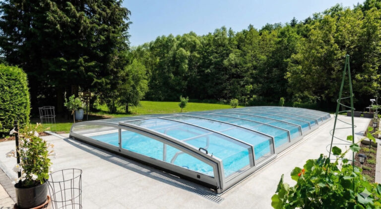 Unsere flachen Poolüberdachungen sind nicht nur funktional, sondern auch ein optisches Highlight in jedem Garten. Ihre niedrige Bauweise ermöglicht es, dass sich die Überdachung nahtlos in die Umgebung einfügt und gleichzeitig eine ästhetisch ansprechende Atmosphäre schafft.