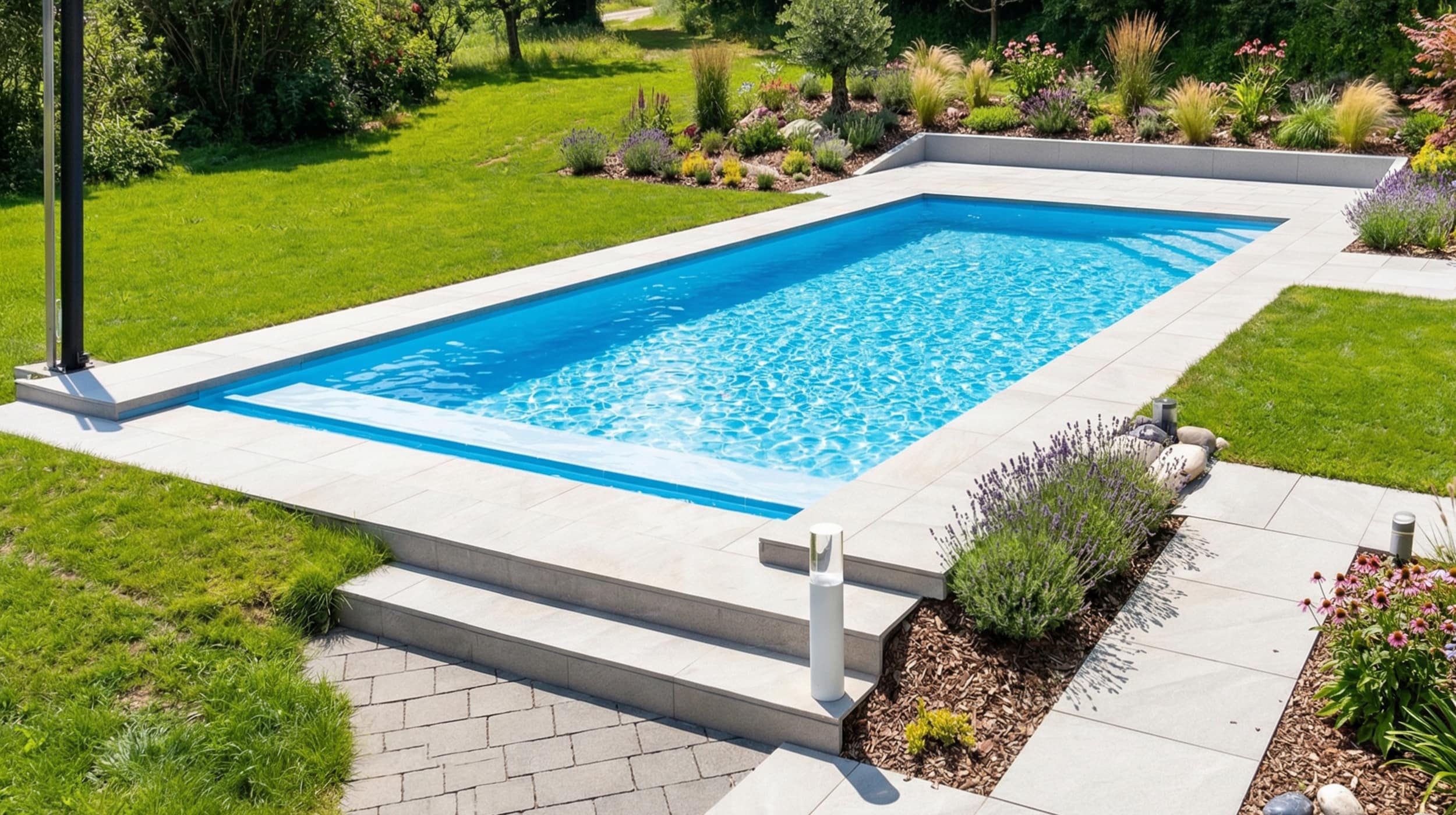 Beim Konzept Pool haben Sie die Möglichkeit, eine Styroportreppe als Einstiegsvariante zu wählen.