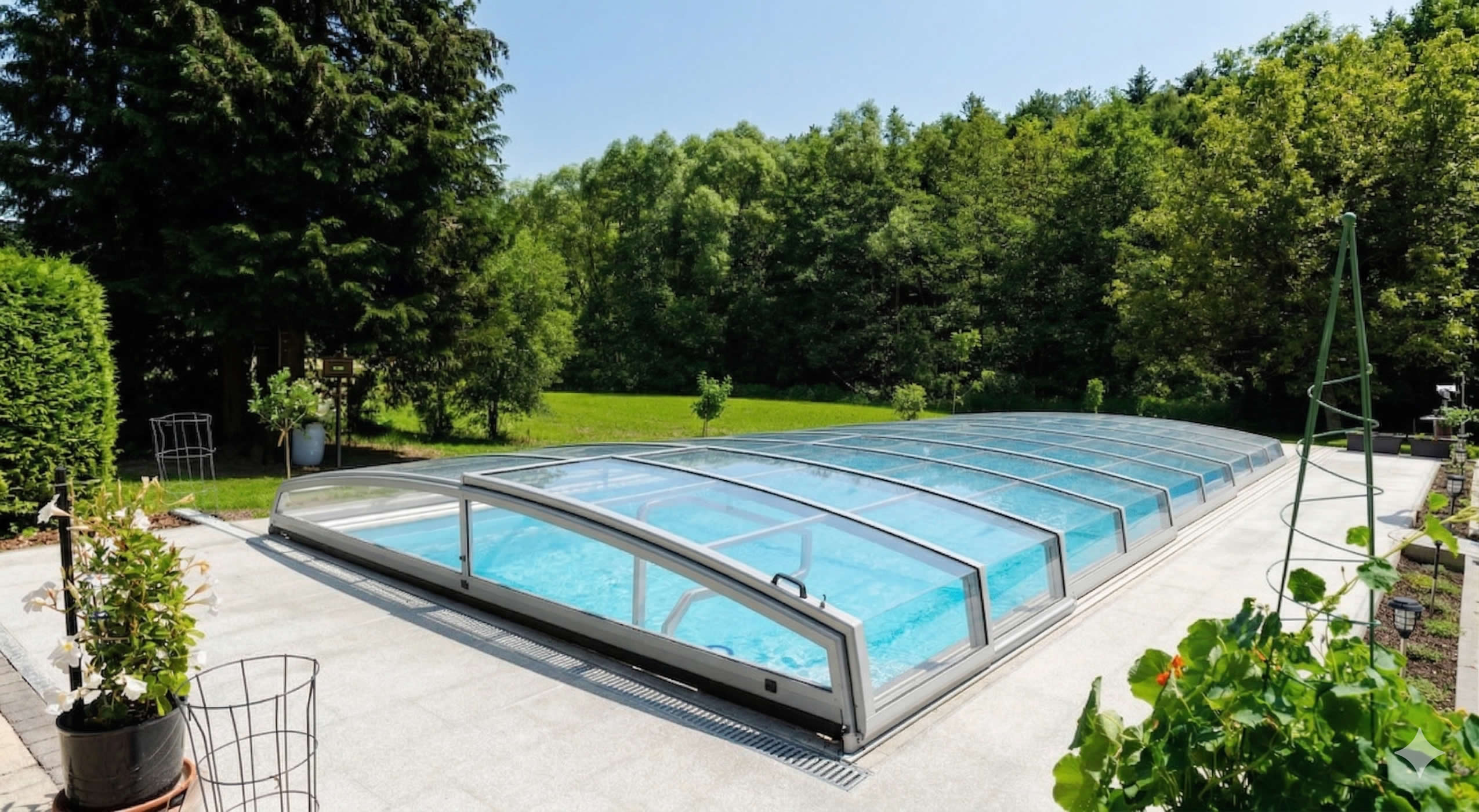 Unser Modell Ecoflat beweist, dass hochwertige, preiswerte Poolüberdachungen aus Österreich für jedes Budget möglich sind.