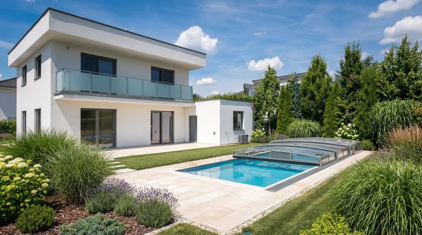 Poolüberdachungen der Serie Superflat verleihen dem Pool eine ganz besondere Optik und können Ihren Wünschen entsprechend angepasst werden. Sie schützen Ihr Beckenwasser vor Schmutz und sorgen für eine konstante Temperatur.